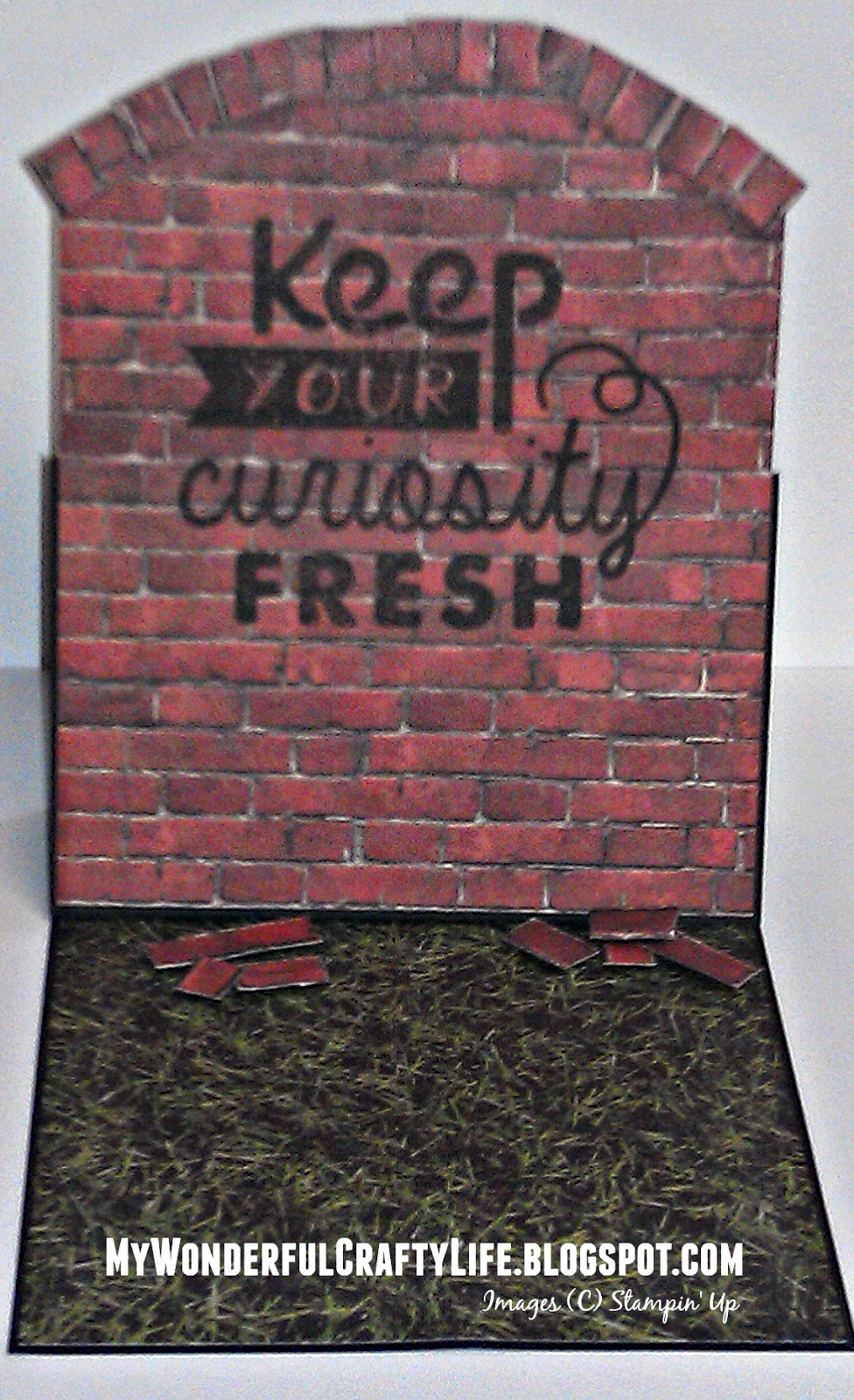 You should be good to go now. You can place a sentiment on the grass if you wish. I decided not to because I wanted my fallen bricks to be the focal point. Again, it's all preference...